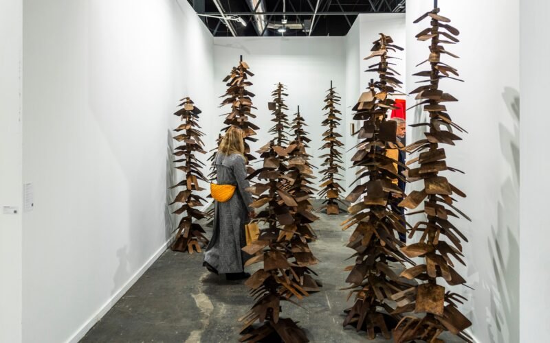 Entre los pabellones 7 y 9 del recinto ferial se vislumbran árboles pintados, fotografiados, en vídeo; hay esculturas de árboles en cerámica y metal, hay troncos de árboles como soporte, hay ramas, hojas y flores… por haber, hay incluso alguna planta viva, como en la pieza del salvadoreño Simón Vega que presenta la galería madrileña Albarrán Bourdais, Estela del Gobernante G, un diálogo entre una fría máquina de metal y el frescor acuático de la naturaleza. “Muchas veces los artistas dan mejor que nadie las noticias”, apunta Raquel Ponce, de Ponce+Robles. Y, en esta ocasión, parecen haber escogido al árbol como altavoz de sus reivindicaciones.